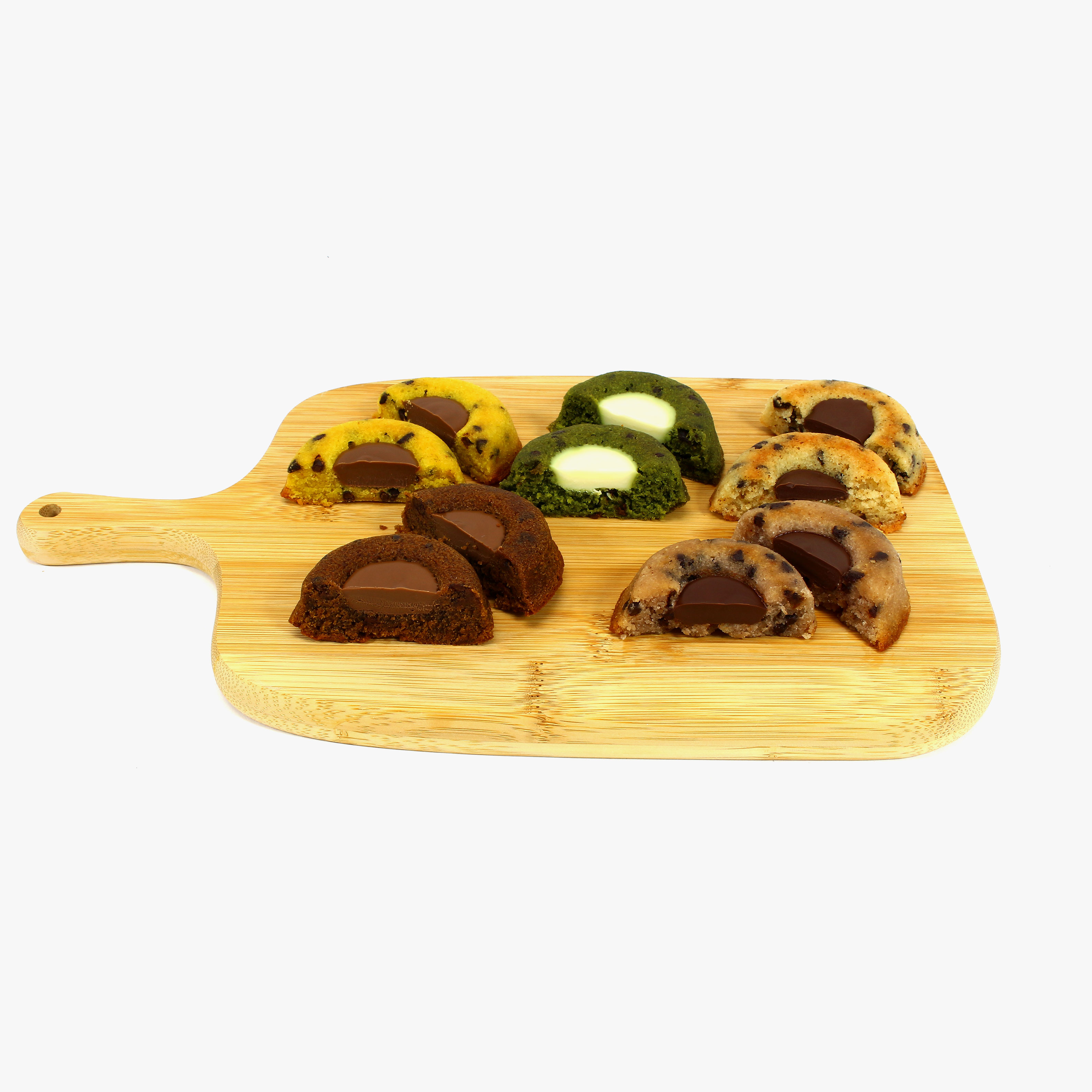 中央には濃厚なチョコレートガナッシュを流し込み、見た目も味わいも華やかに仕上げています。